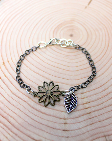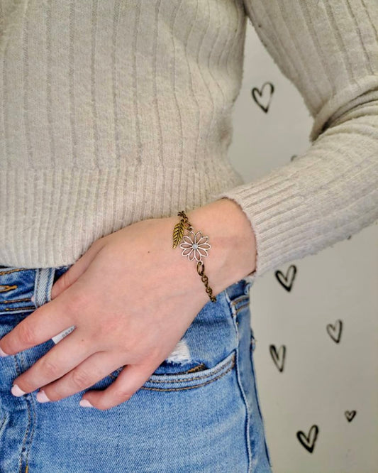 Flower + Tiny Leaf Mixed Metal Bracelet