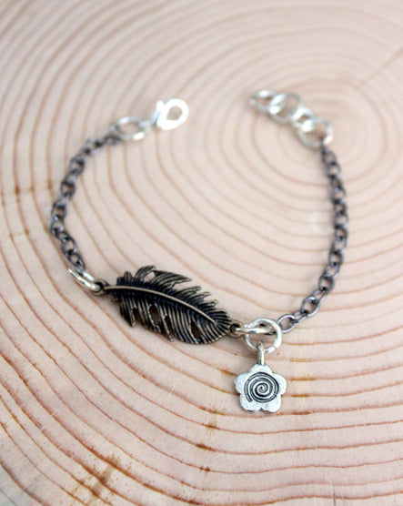 Feather + Flower Mixed Metal Bracelet