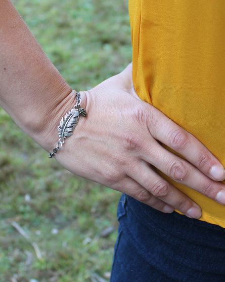 Feather + Pine Cone Mixed Metal Bracelet