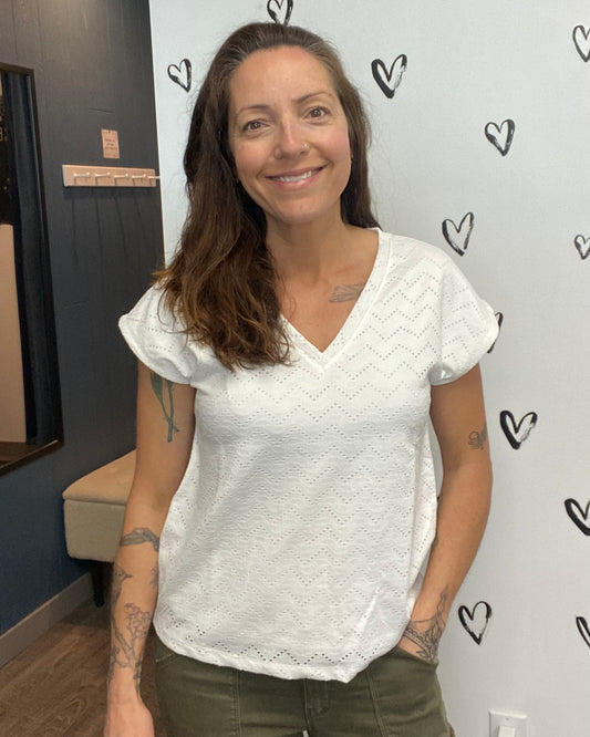 The Thas Eyelet V-Neck Top: 3 COLORS