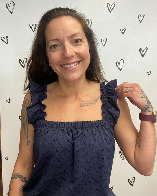 The Thas Eyelet Ruffle Singlet Top: 2 COLORS