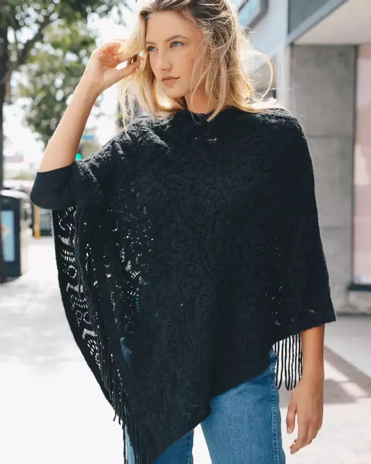 The Turtleneck Ribbed Knit Poncho with Armholes