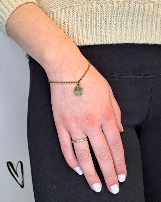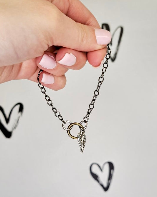 Tiny Leaf + Circle Mixed Metal Bracelet