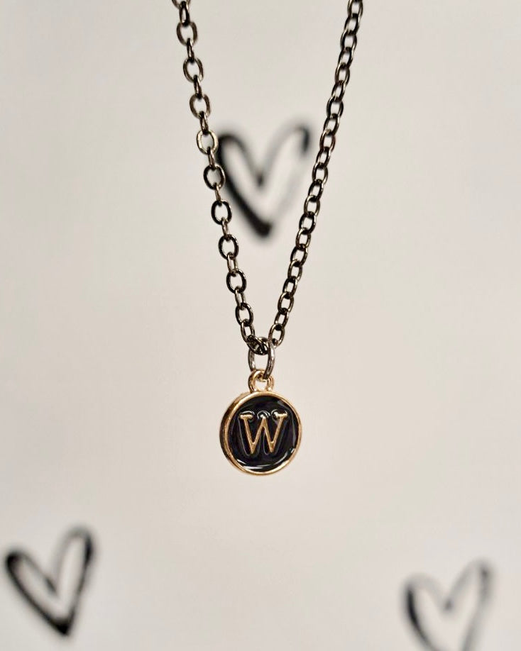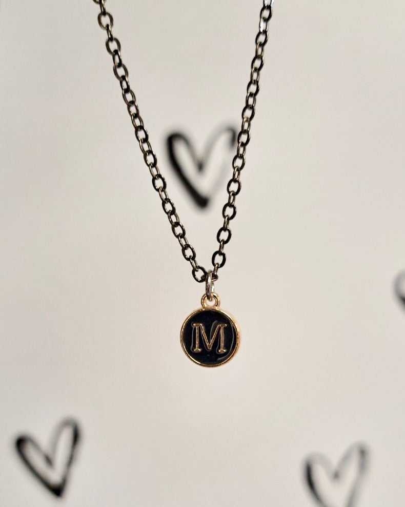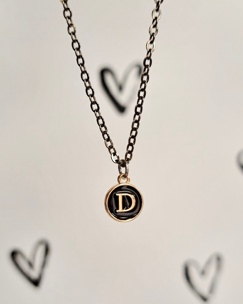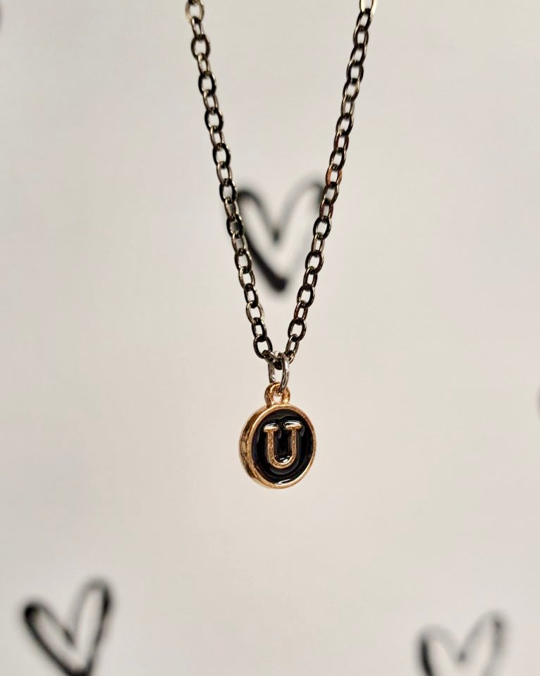 The Black Initial Necklace brings a sleek, modern touch to your style with a minimalist black pendant and a gold initial of your choice. Perfect for keeping a personal connection close, whether it’s a reminder of someone special or a symbol of self-love. Its versatile design makes it easy to wear alone or layered with other pieces for a simple, polished look.