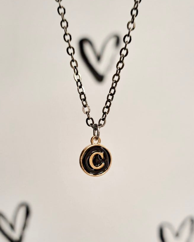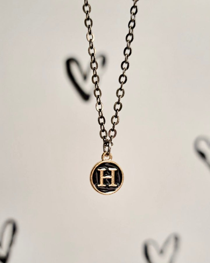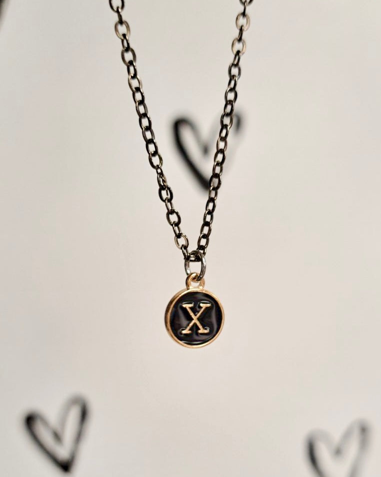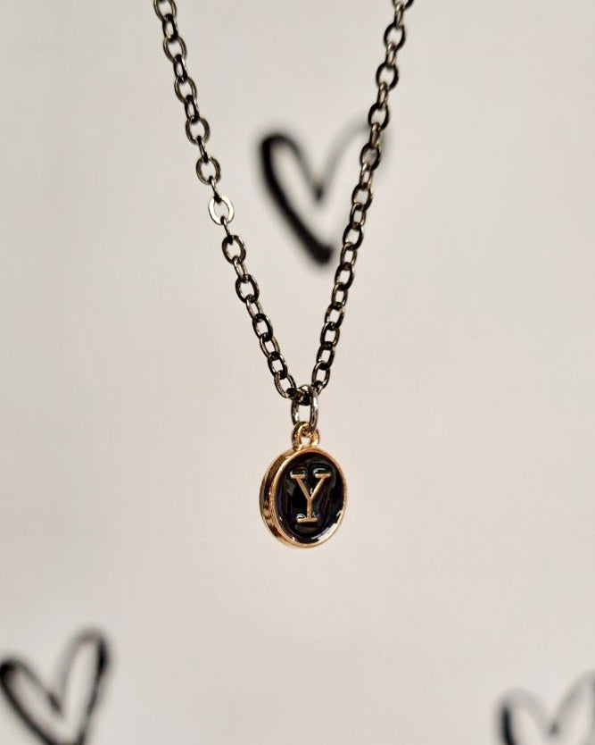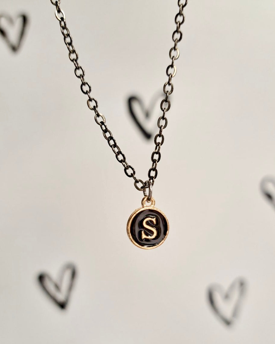 The Black Initial Necklace brings a sleek, modern touch to your style with a minimalist black pendant and a gold initial of your choice. Perfect for keeping a personal connection close, whether it’s a reminder of someone special or a symbol of self-love. Its versatile design makes it easy to wear alone or layered with other pieces for a simple, polished look.