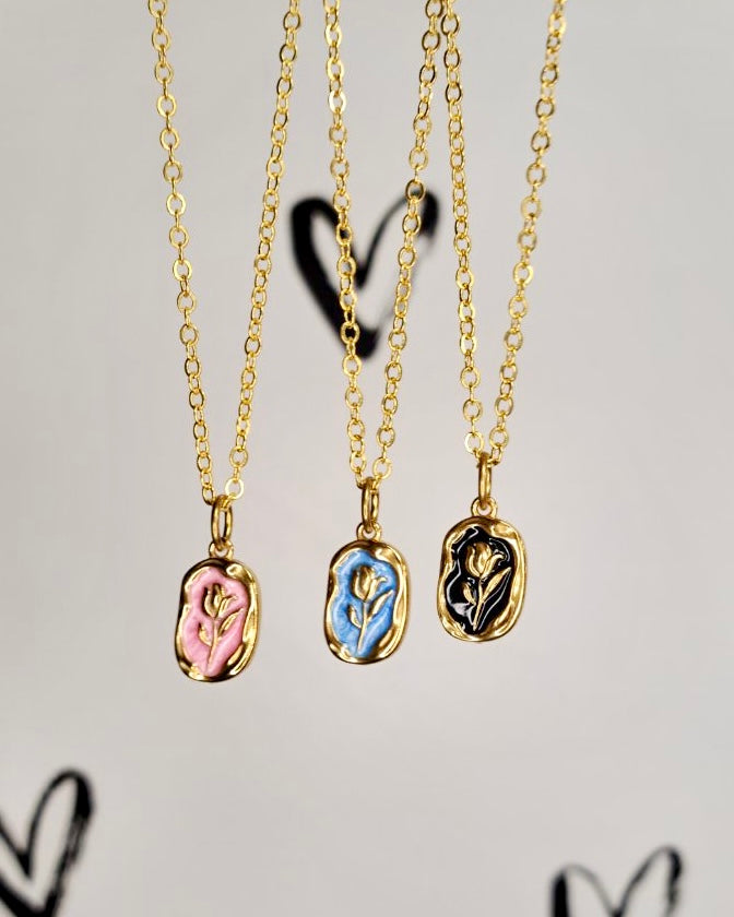This Enchanted Rose necklace is perfect for nature enthusiasts who love adding a pop of color to their look. With a beautifully crafted rose flower charm, it symbolizes blossoming, resilience, and the beauty of change. Just as flowers brighten our world, this necklace serves as a reminder of your inner strength and the vibrant journey of life.