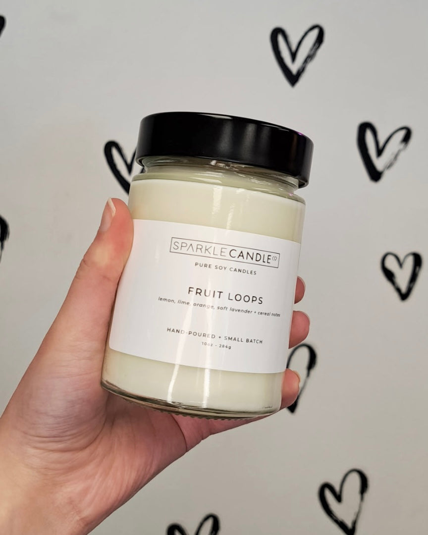 Step back in time to Saturday morning cartoons with the Fruit Loops Candle, bursting with the sweet, citrusy scent of your favorite childhood cereal. Made with a natural coconut soy wax blend, it burns clean and even, adding a playful touch to your space.