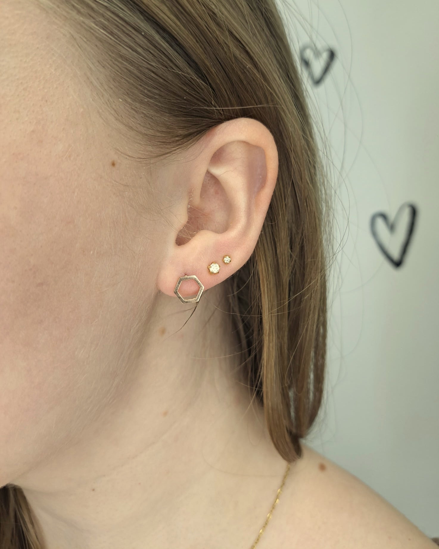 Hexagon Studs celebrate the beauty of symmetry and structure. A symbol of harmony, efficiency, and strength, the hexagon is found in nature’s most perfect designs, from honeycombs to snowflakes. Whether you love their geometric elegance or their deeper meaning, these studs are a stylish reminder of balance and resilience in everyday life.