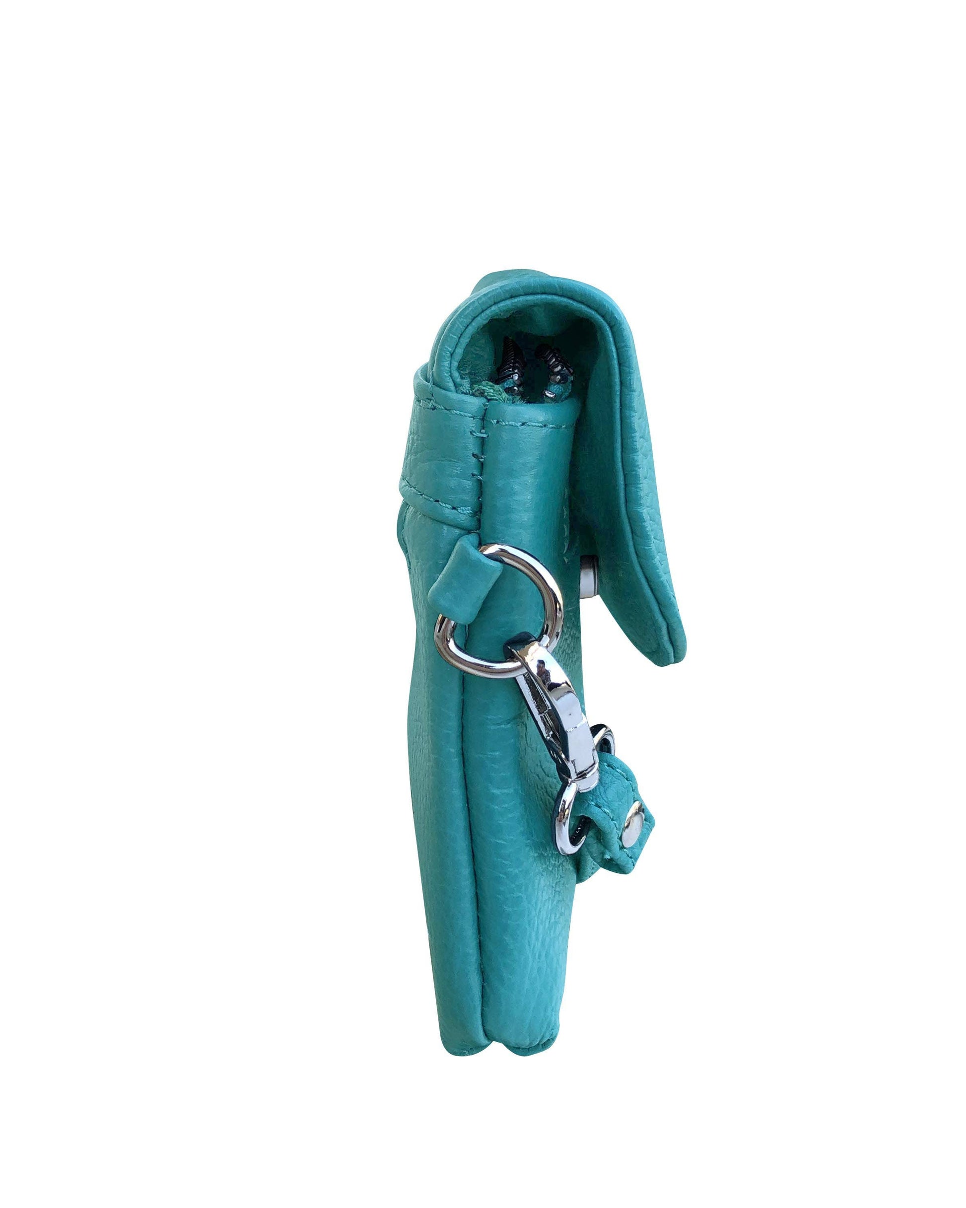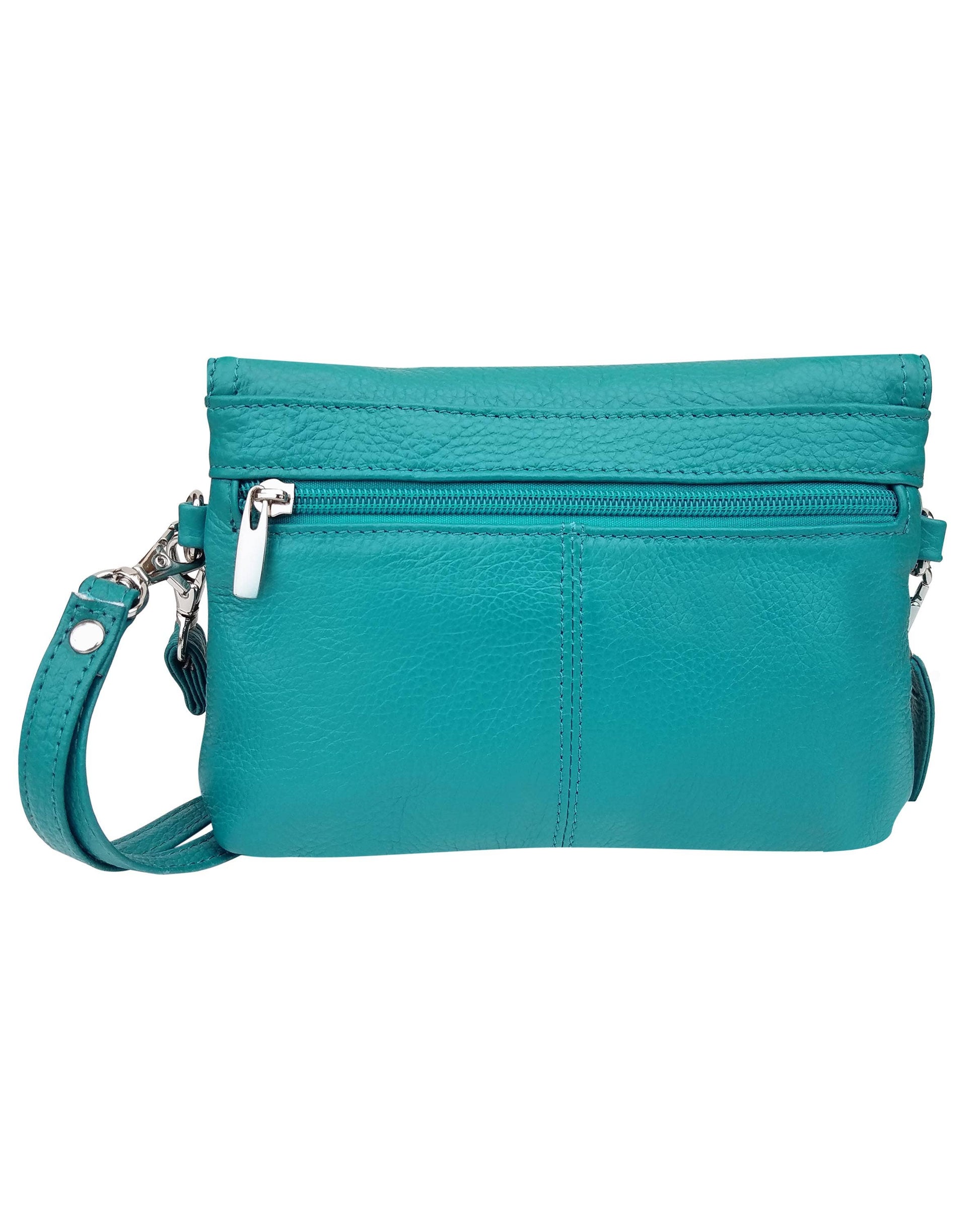 The perfect leather compact purse that can be worn as a clutch and as a crossbody. It boosts so many compartments; a spacious main pocket, 4 credit card slots, 3 zipper pockets plus an additional slip pocket perfect for your cell phone. The flap-over has a snap button closure.