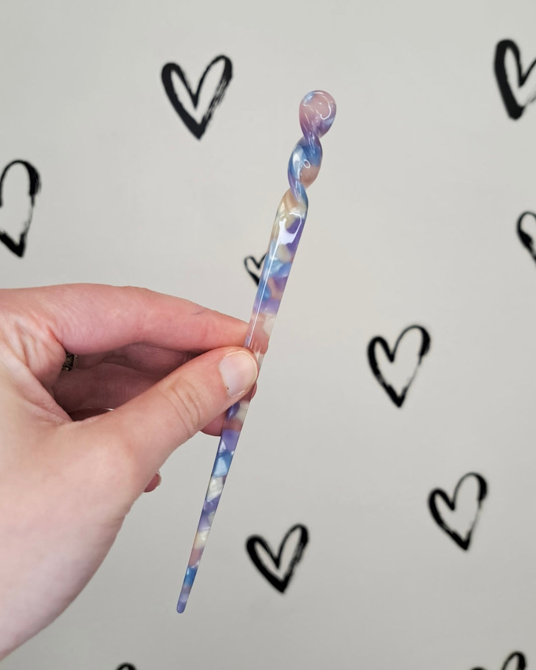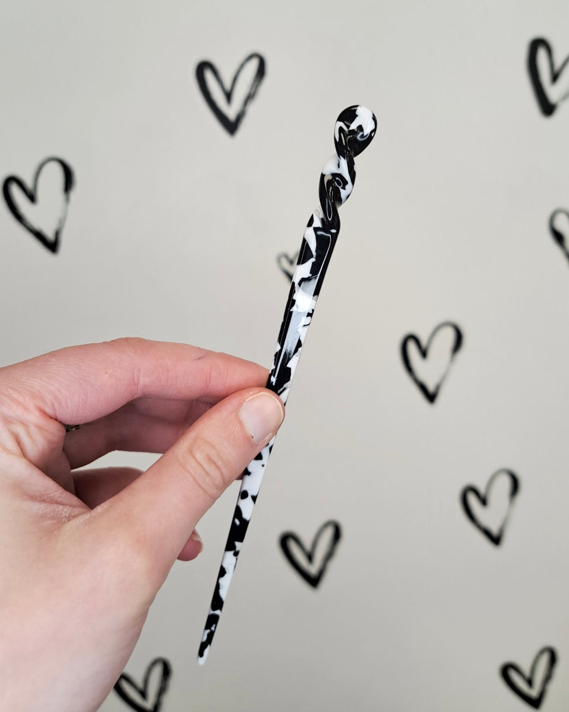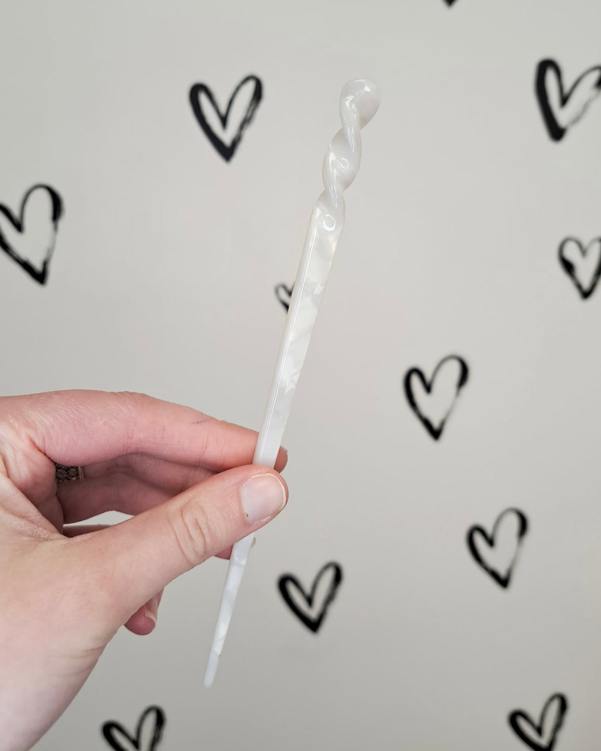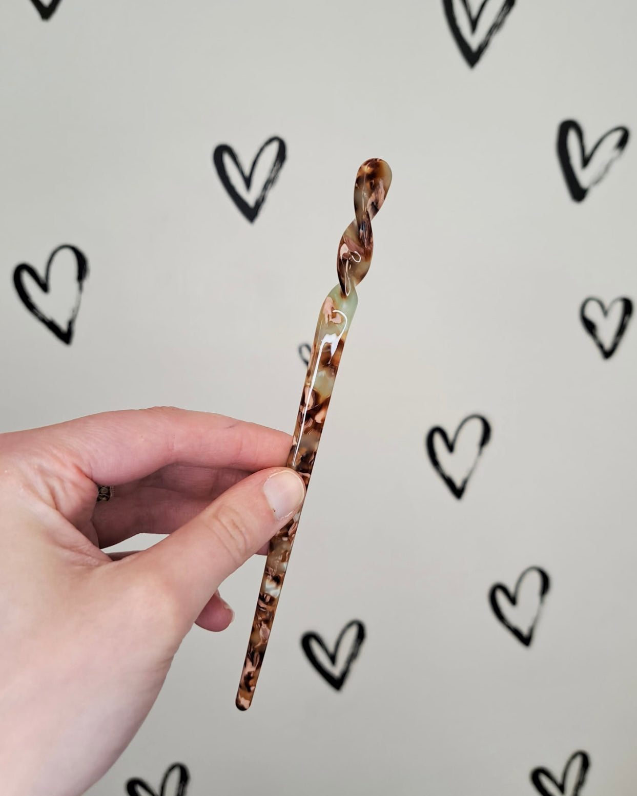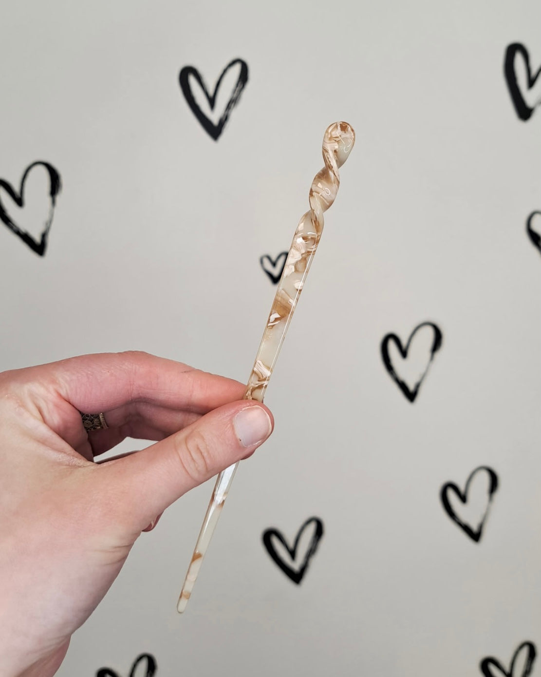 Secure your hair with this elegant Marble Resin Hair Stick, perfect for creating chic up-dos, twists, and buns with ease. Designed for both function and style, its smooth, lightweight shape glides through hair without snagging, providing a comfortable yet secure hold. A timeless accessory for effortless, everyday elegance!