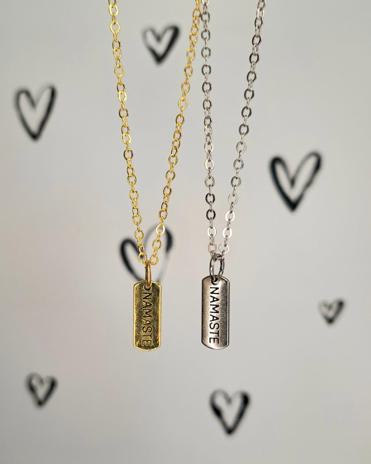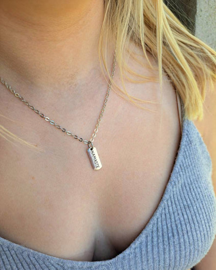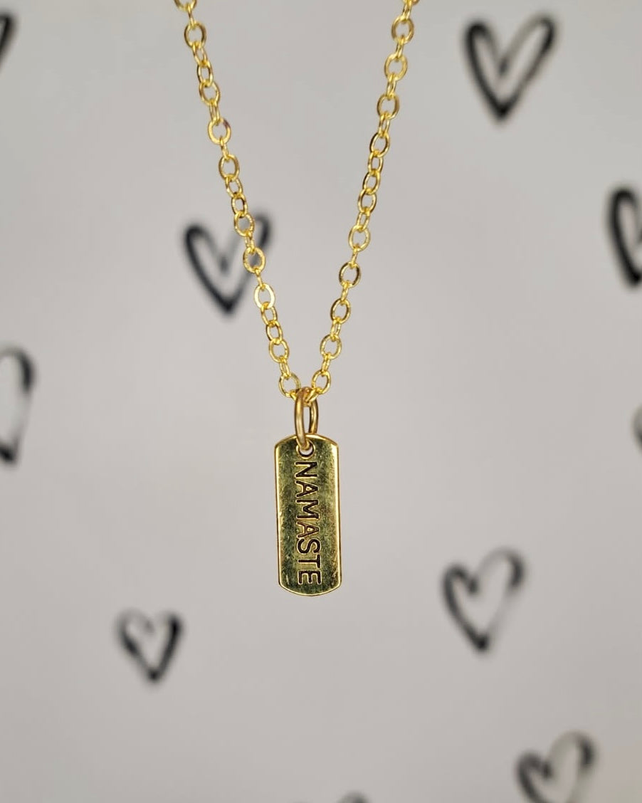 A beautiful charm, engraved with the word "Namaste," embodies a beautiful gesture of respect and connection. It serves as a reminder to honor the light and spirit within yourself and others, promoting mindfulness and peace. Whether you're seeking balance in your daily life or embracing a moment of serenity, let this necklace inspire you to cultivate gratitude and presence. A meaningful piece for those who value harmony and the shared journey of humanity.