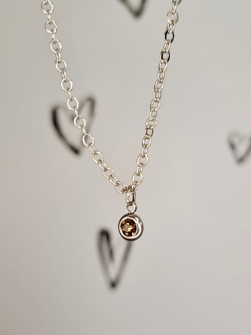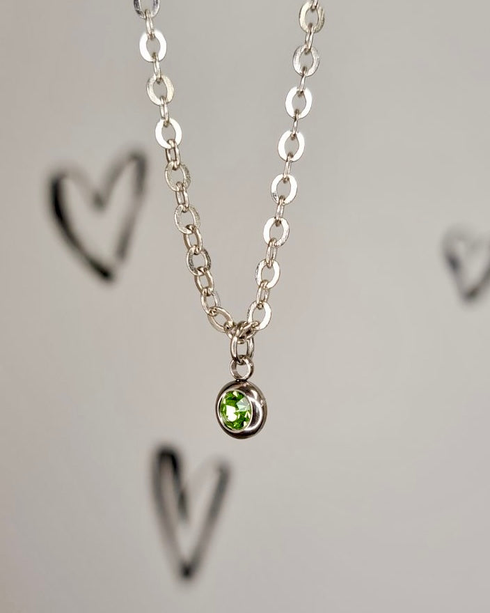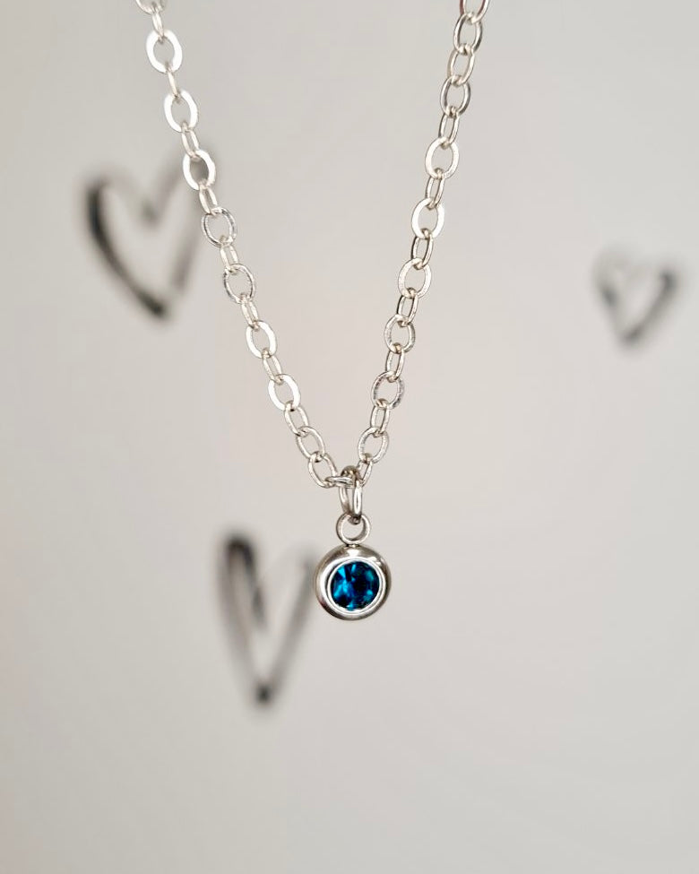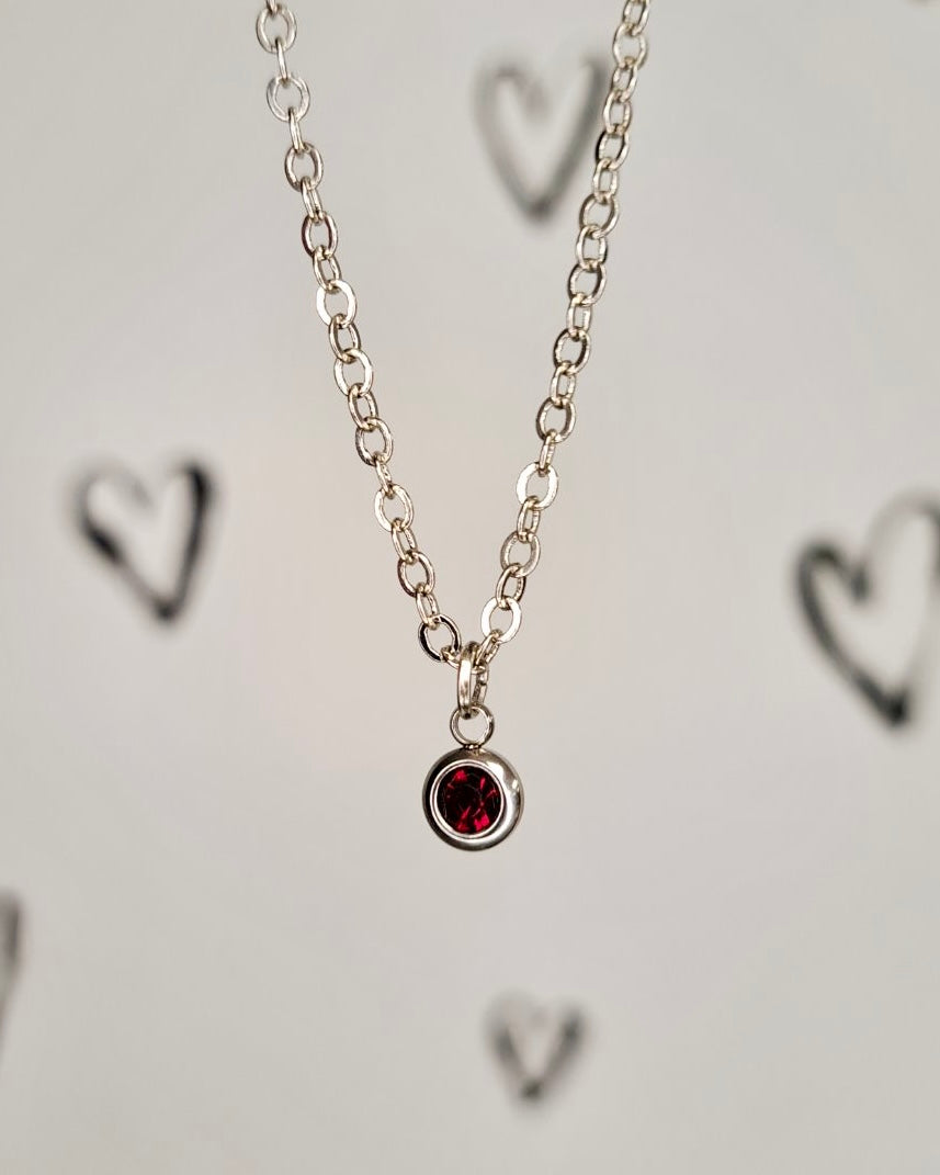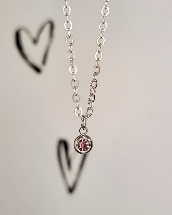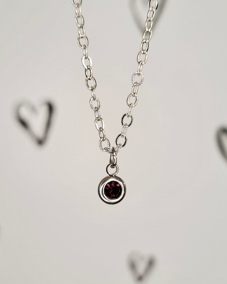 An elegant birthday piece that won't lose its sparkle. A tiny silver charm is set with a Swarovski crystal in the month of your choice and hung from silver chain. Perfect to wear solo or as part of your favorite layered look. See photo for the birthstone legend.