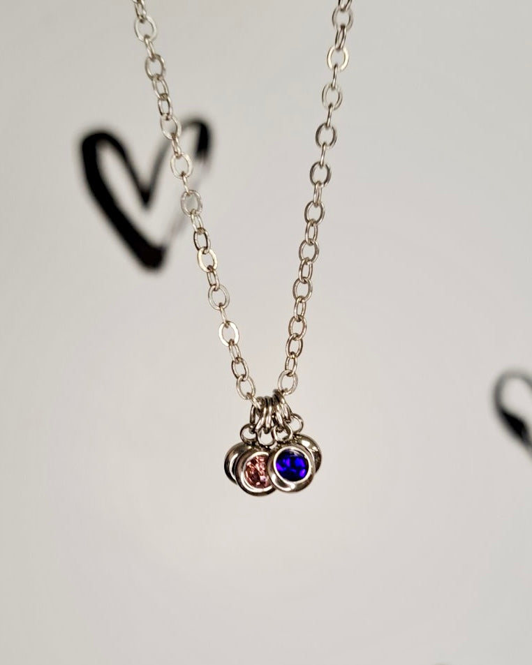Hold your loved ones close to your heart with our elegant multi-stone birthstone necklace. Each silver charm is set with a Swarovski crystal in the month of your choice. See the last image for the birthstone legend.