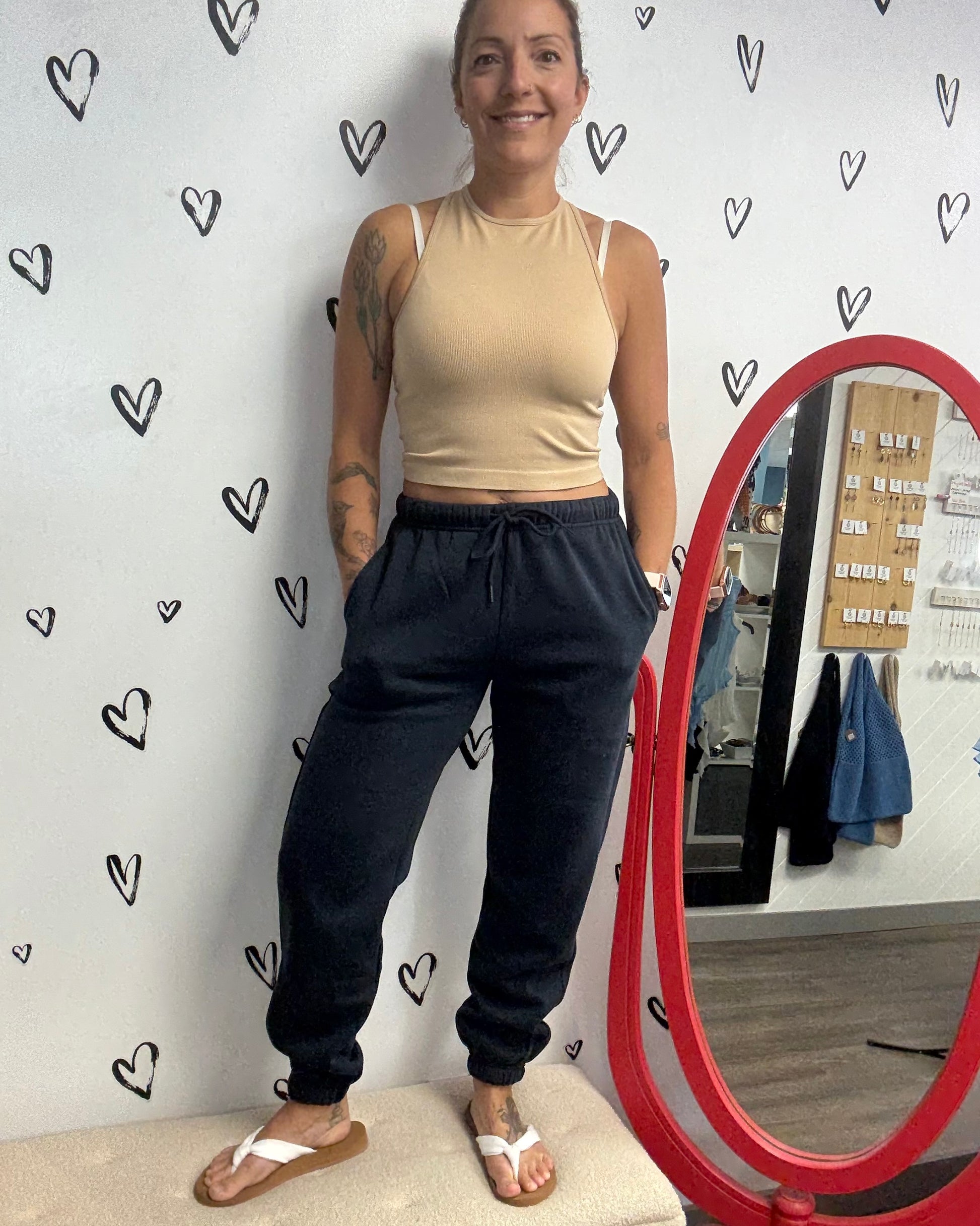 Cozy meets cool in these everyday sweatpants—your new off-duty staple. Made from a super comfy polyester-cotton blend, they feature a relaxed fit and soft feel that’s perfect for lounging, errands, or wherever the day takes you. Pair them with a cropped tee or hoodie for that laid-back look.