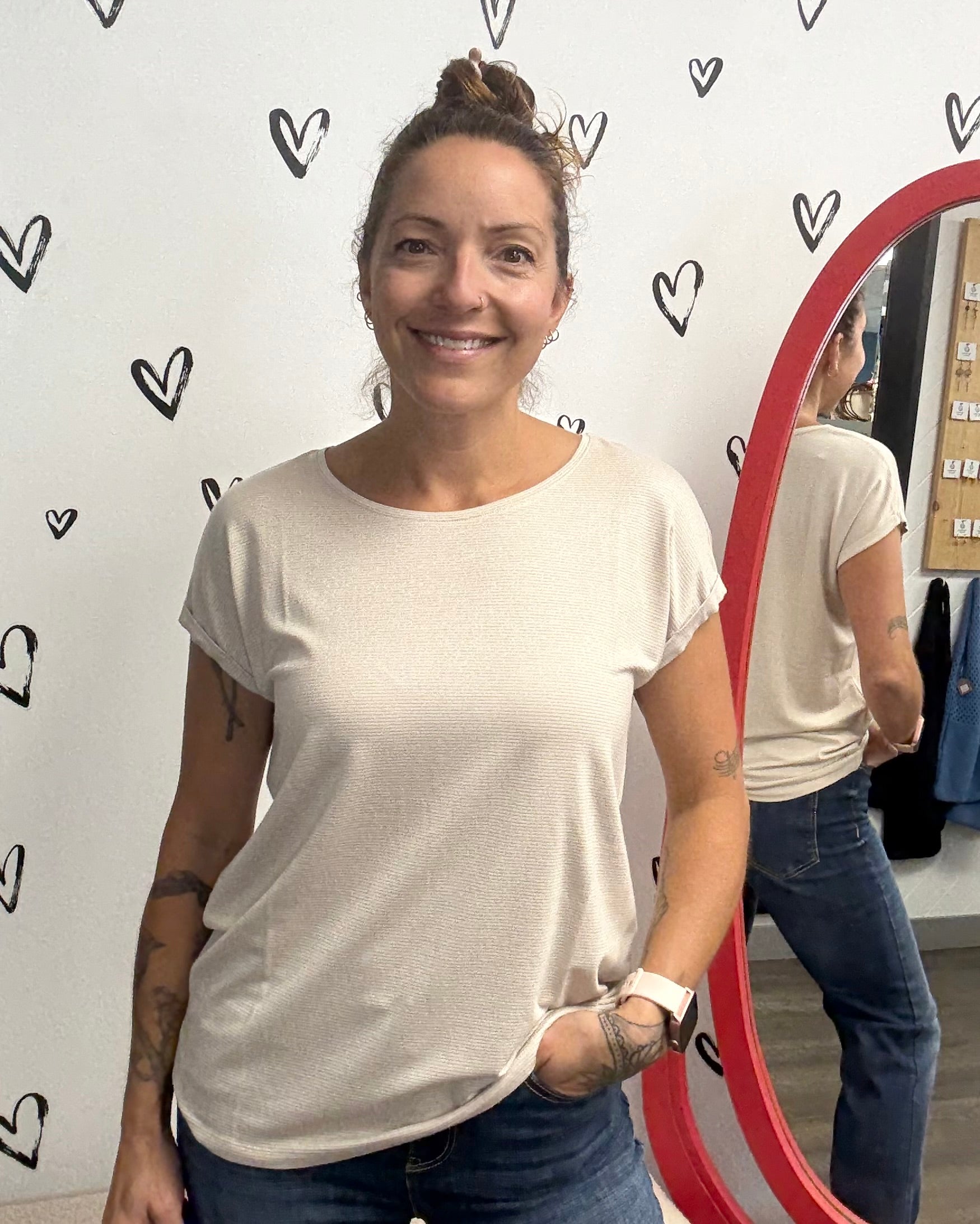 It’s the kind of top you’ll want in every color—good thing it comes in three! The Lava Glitter Stripe Top is soft, comfy, and very flattering, with a subtle striped pattern that adds just the right amount of texture. Mini sleeve cuffs and a relaxed fit make it easy to wear tucked or untucked, dressed up or down. A wardrobe staple you’ll reach for again and again.