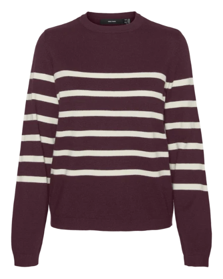 Features: Pullover sweater with an crew neck, long sleeves, and striped design.