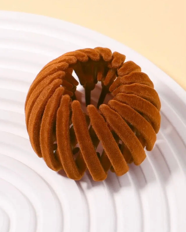 Fix your hair on the go - the Velvet Expandable Bun Hair Claw is the perfect accessory for everyday wear. Whether used in a ponytail, a bun or half up/half down; this accessory adds a creative touch to your hairstyle. With the help of the mini teeth and tight squeeze, this hair claw is amazing at gripping your hair and staying in place. Six colors to choose from.